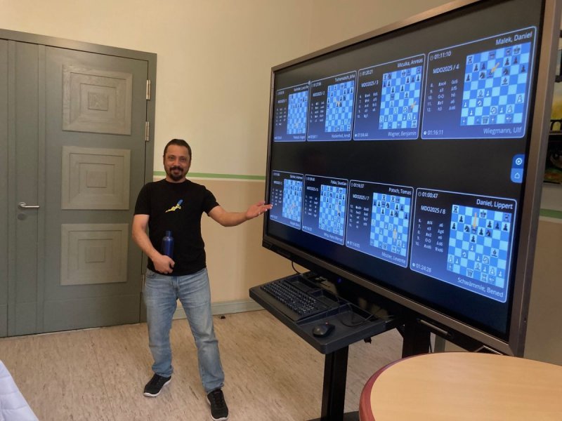 Um ein Gedränge von interessierten Zuschauern an den Spitzenbrettern zu vermeiden, wurden die ersten 8 Bretter der Ottonen-Gruppe in den Vorraum des Turniersaales übertragen. Der Brasilianer Carlos Alberto Nunes (SG Aufbau Elbe Magdeburg) hatte diesen technischen Part übernommen und spielte zudem noch das Turnier in der Editha-Gruppe. Auch ihm gebührt ein herzliches Dankesschön.