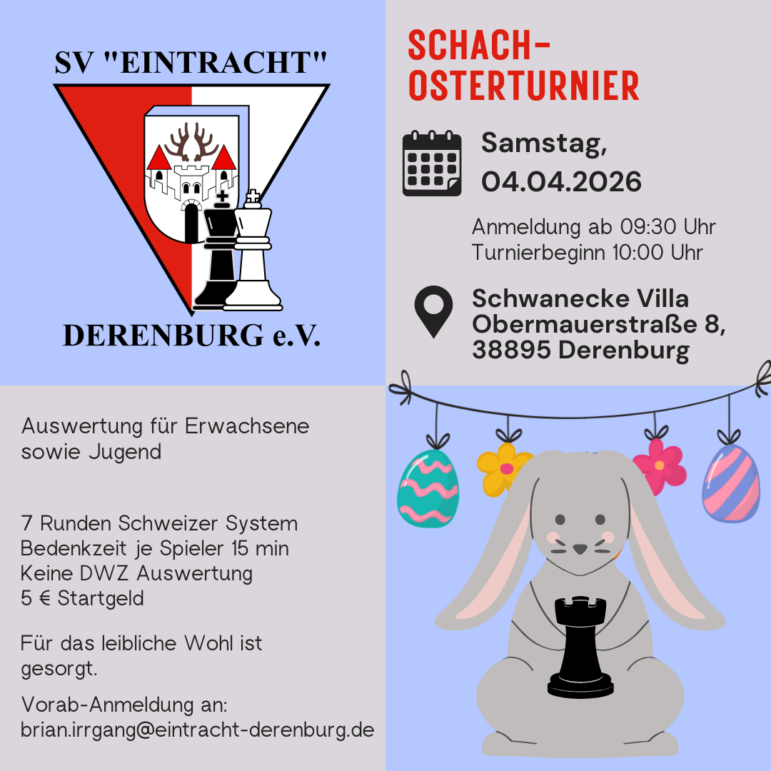 hiermit laden wir Euch zu unserem Osterturnier im Schach herzlich ein.