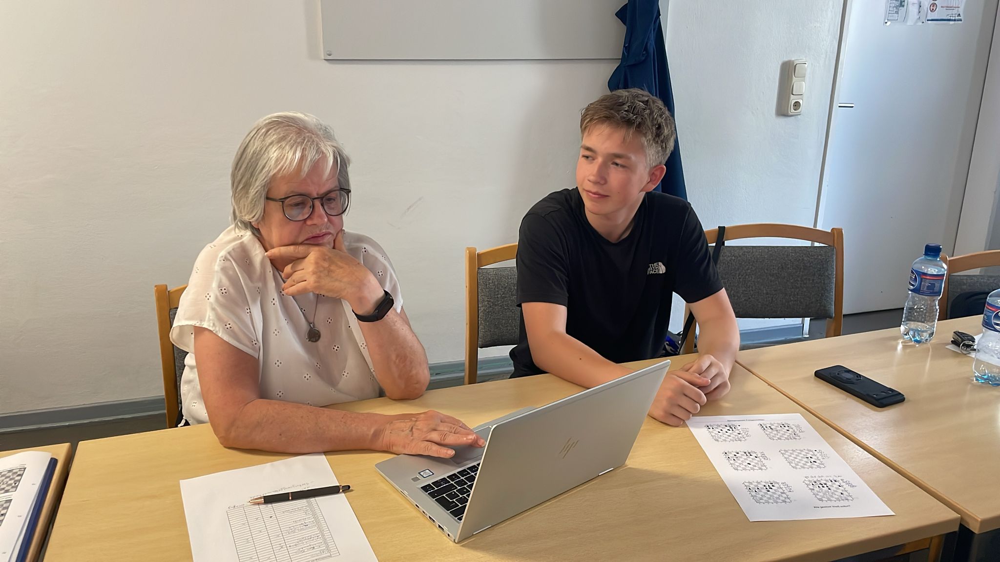 Arne Herter (rechts) - Lehrprobe bestanden!Hier konnte Wiebke Baumgarten, die nicht nur selbst erfahrene Schachspielerin ist, sondern auch im Bereich Psychiatrie arbeitet, wertvolle Impulse setzen.