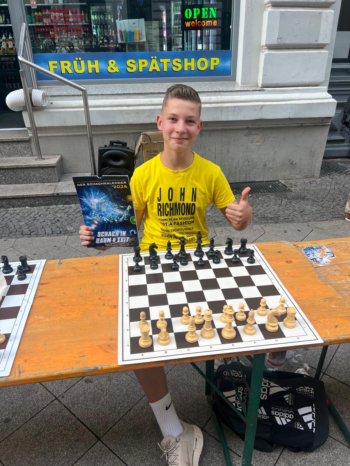 Am Freitag Nachmittag war es wieder soweit. Am Hasselbachplatz in Magdeburg war Schachtime mit Musik, Simultanschach und Kondiblitz bei hochsommerlichen Temperaturen. Tatjana Melamed hatte dabei starke Konkurrenz im Simultan. Viele Vereinsspieler, aber auch Freizeitspieler forderten Tatjana in langen Partien heraus. Tatjana gab bei 30 Partien nur einen halben Punkt ab. Der 13jährige Igor Shevchenko von den Schachzwergen erzielte mit einer starken Partie das Remis. Unsere Präsidentin Claudia Meffert war auch vor Ort. In den letzten 30 Minuten erhielt Tatjana Hilfe von Jens Windelband, weil viele Partien noch liefen. Danke für die Unterstützung durch das Hasselbach Management des Vereins Stadtmarketing Pro Magdeburg e.V. und Domino-Pizza. Es ist erfreulich, dass viele Teilnehmer*innen auf eine baldige Wiederholung hoffen.