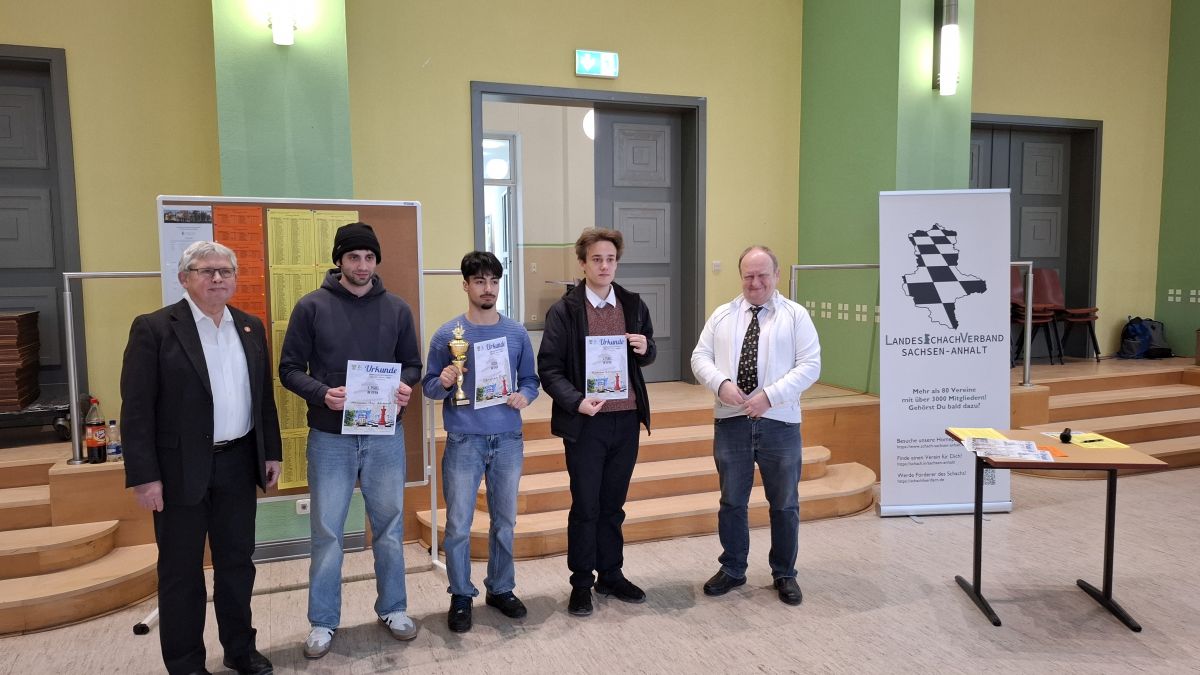 Frank Dannhauer, Landesmeister 2026 Vinzent Spitzl, Daniel MalekVinzent Spitzl (SG Aufbau Elbe Magdeburg) konnte nach seinem Vorjahressieg erneut den Titel eines Landesmeisters von Sachsen-Anhalt des Jahres 2026 erobern. Daniel Malek (SG Aufbau Elbe Magdeburg) erkämpfte den 2. Platz. Frank Dannhauer begleitete das Glücksgefühl, dass er als Senior mit den besten Nachwuchsspielern unseres Bundeslandes noch stand halten kann.