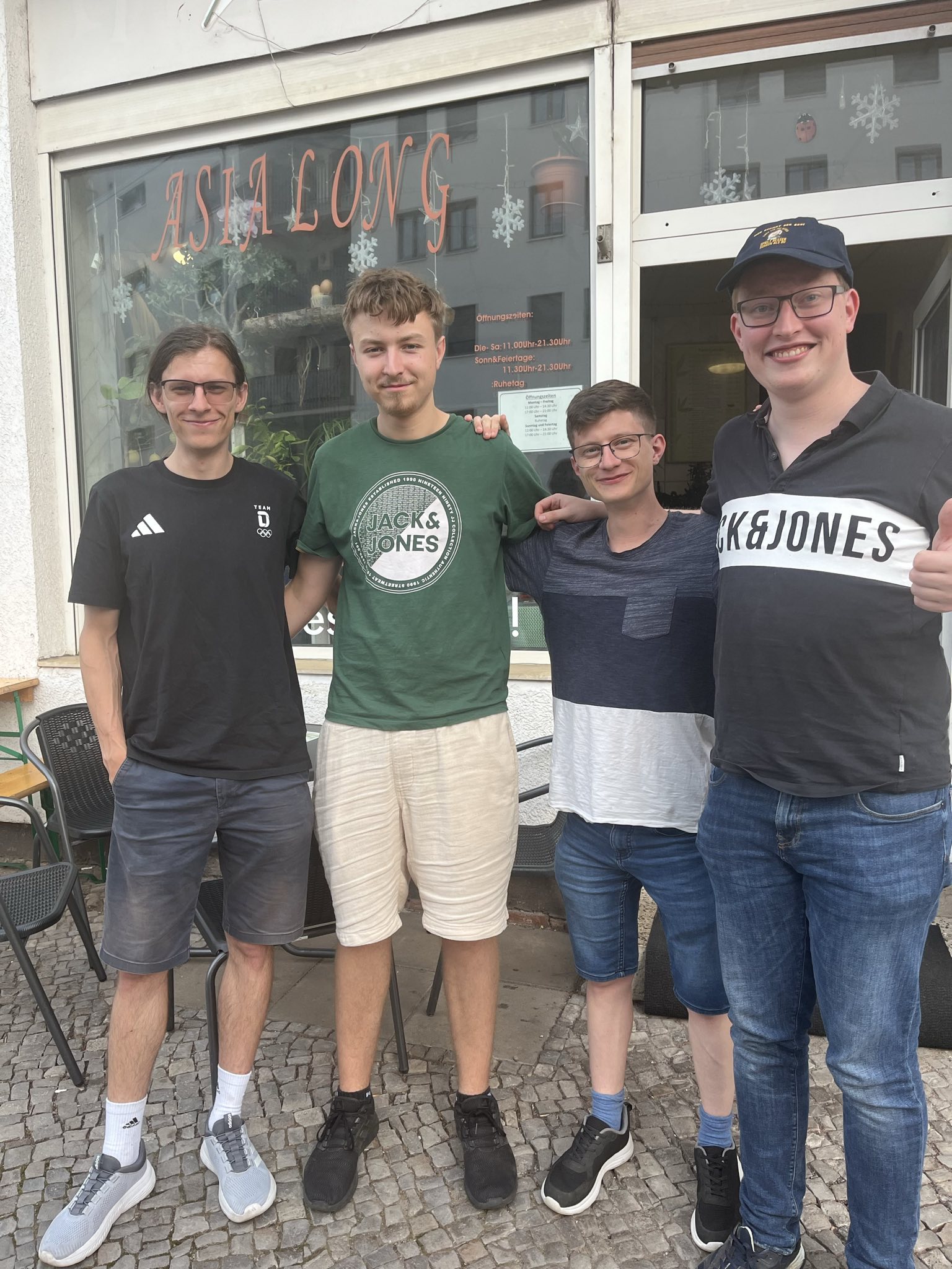 Am Dienstag ab 11 Uhr, machte die Schachtour der Deutschen Schachjugend Station in Magdeburg. Organisiert wurde die Aktion vom USC Magdeburg unter der Leitung von Martina Dannies. Der Vorstand der Abteilung Schach beim USC kümmerte sich vorbildlich um Unterkunft und Verpflegung des DSJ-Teams. Am Vorabend genossen die Teamer Adrian, Bastian und Julian ein gemeinsames Abendessen im Asia Restaurant – ein echter kulinarischer Geheimtipp in Magdeburg.