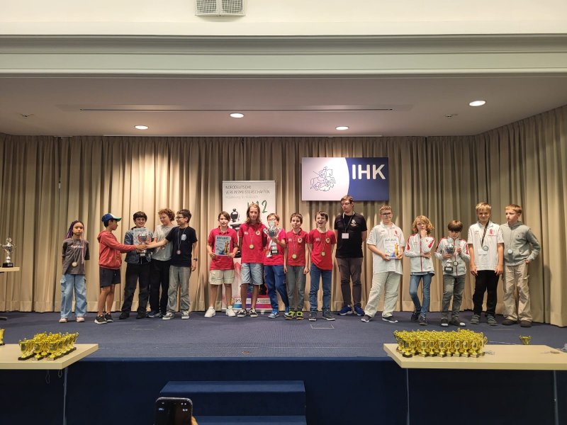 Ca. 250 Personen warn vom 12.-16.09.2025 in der Landeshauptstadt zu Gast, um die Meistertitel und die Qualifikationsplätze zur Deutschen Vereinsmeisterschaft auszuspielen. Souverän durchsetzen konnten sich dabei jeweils mit zwei Punkten Vorsprung die Barnimer Schachfreunde in der u12 und Empor Berlin in der u14. Kompletiert wird das Podium in der u12 von den beiden Berliner Teams von der TSG Oberschöneweide und Empor Berlin. In der u14 konnten der Hamburger SK und Werder Bremen die weiteren Medaillenplätze erringen.